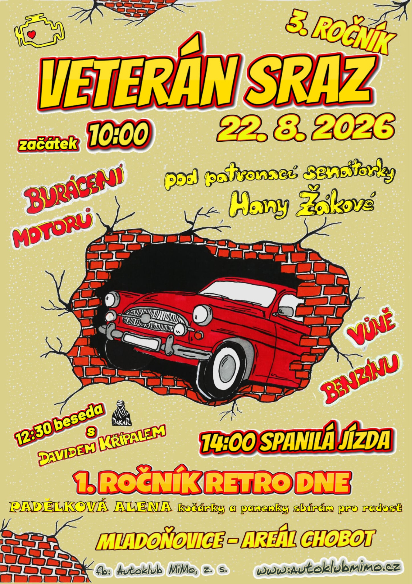 22.8. 2026 III. ročník srazu veteránů a zároveň I. retro den v Mladoňovicích